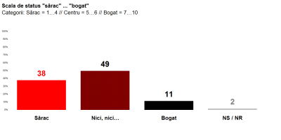 Douǎ din întrebǎrile pe care le punem frecvent în chestionare sînt legate de autopercepția ideologicǎ și de status material. Pe scala stînga dreapta, de la 1 la 10, unde vǎ aflați? Dar pe scala sǎrac bogat, de la 1 la 10, unde vǎ aflați?
