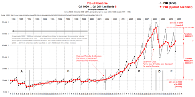 Dincolo de evoluția generalǎ a PIB-ului, cred însǎ cǎ și mai importantǎ este structura sa. Cum se produce PIB-ul? Cum se cheltuie? Pe lîngǎ acestea douǎ, la fel de importantǎ este analiza structurii fluxului de intrǎri și ieșiri din țarǎ, a importurilor și exporturilor. Atît evoluția lor, cît mai ales evoluția sumei lor, a deficitului comercial sînt relevante pentru sǎnǎtatea economicǎ a țǎrrrișoarei noastre, Republica Istericǎ România.