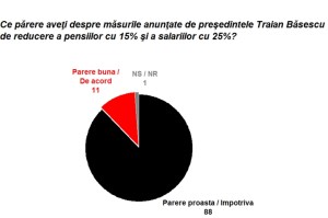 Mai 2010. Nu s-a mărit încă TVA-ul. Traian Băsescu abia a dat discursul despre tăierea pensiilor (afectaţi direct 5,5 milioane oameni) şi reducerea salariilor bugetarilor (afectaţi direct 1,2 milioane de oameni), la care mai adăugăm rude şi alţi oameni care obţin venituri şi care acum trebuie să susţină pe cei loviţi. CCSB face primul sondaj post-factum.