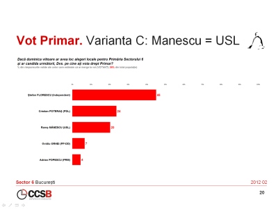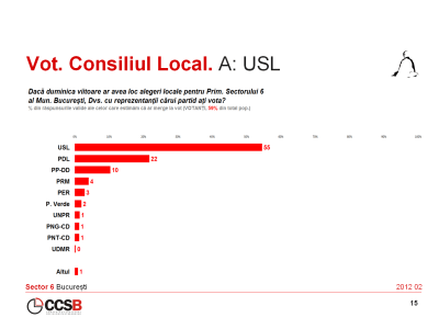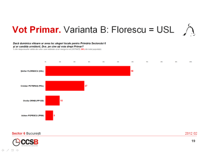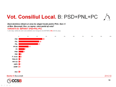 – Spre deosebire de alte sectoare ale Bucureștiului, unde în general PNL stǎ mai bine decît PSD, în sectorul 6 lucrurile stau pe dos: PSD deasupra PNL-ului.