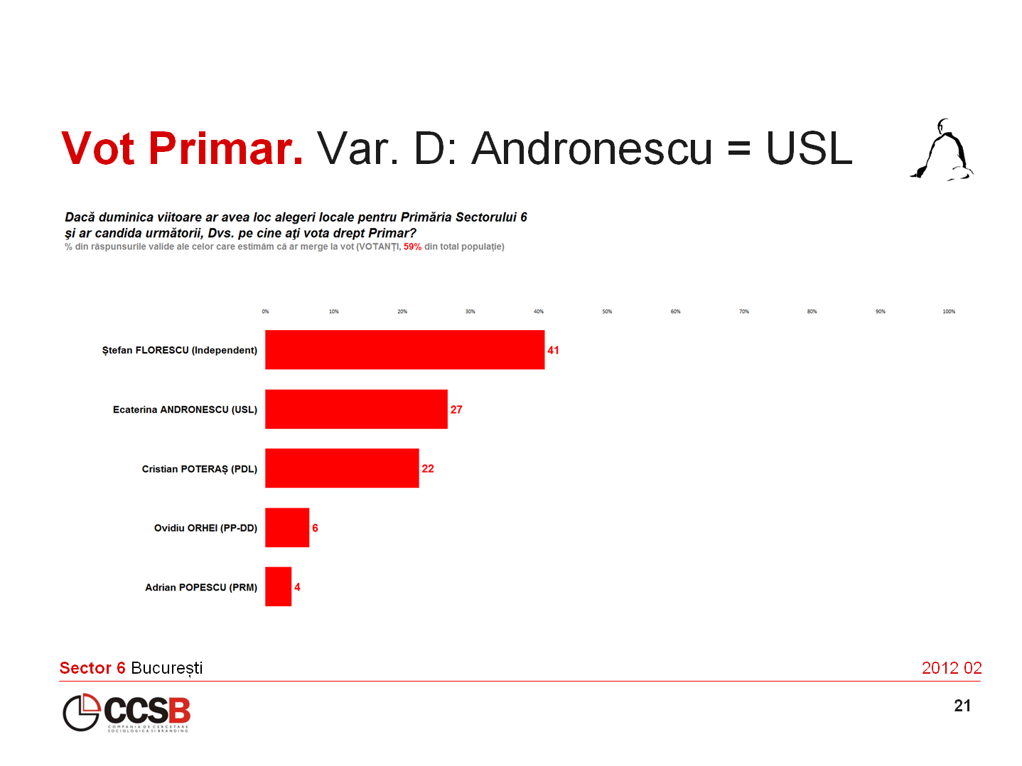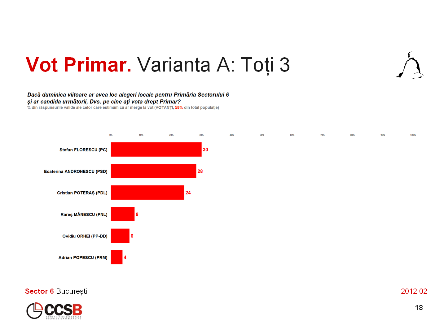 – Spre deosebire de alte sectoare ale Bucureștiului, unde în general PNL stǎ mai bine decît PSD, în sectorul 6 lucrurile stau pe dos: PSD deasupra PNL-ului.