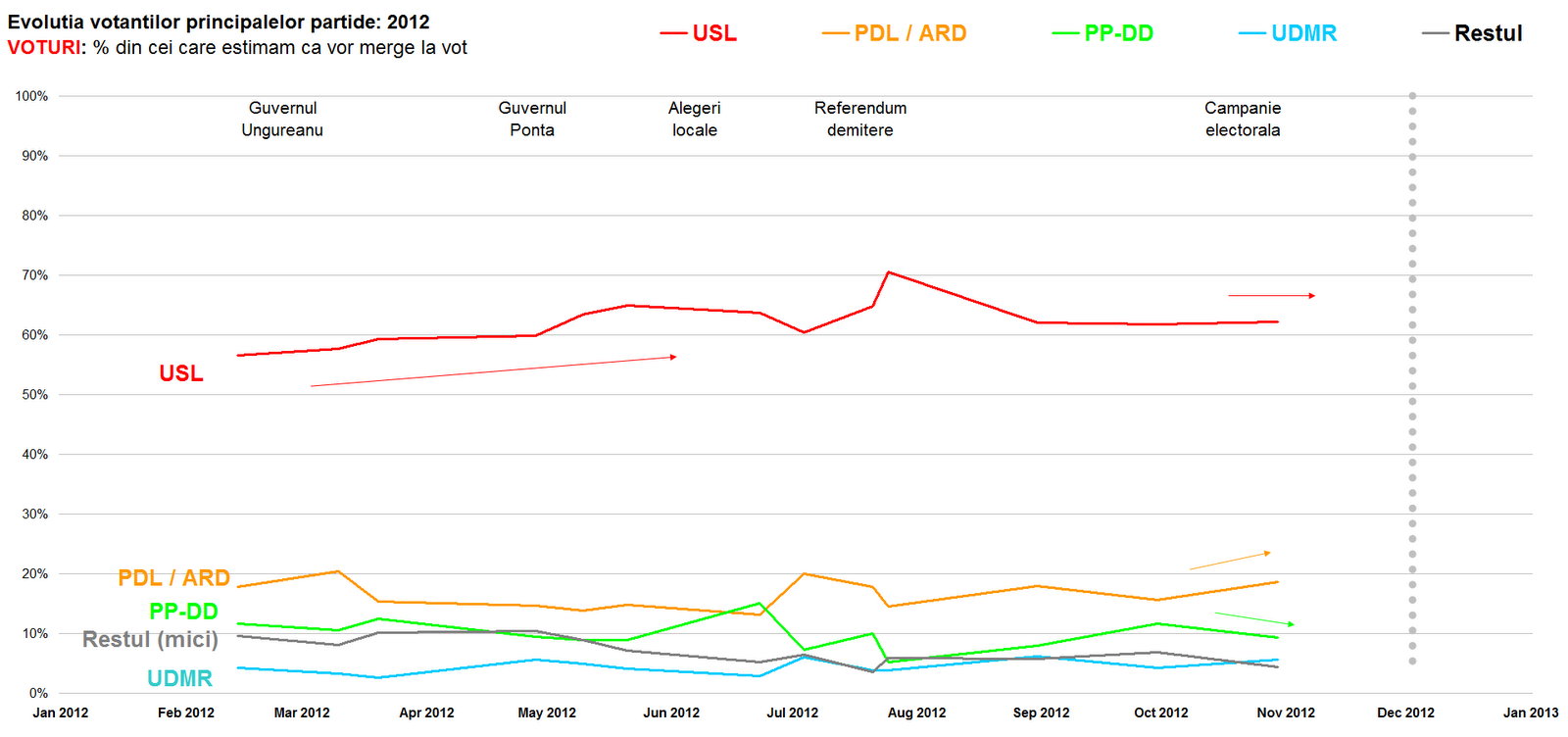 Adicǎ e un calcul de sumǎ zero: îți dau ție USL vreo 2 – 3 puncte procentuale, dar atenție, le iau de la ceilalți, sǎ-mi rǎmînǎ suma totalǎ 100%.