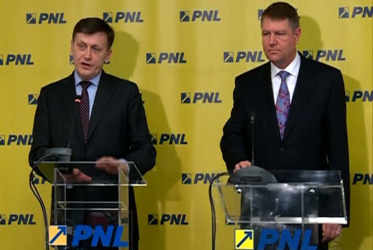 ”Crin Antonescu: Bună ziua! Mulțumesc pentru prezență! Poate că n-ar mai trebui să spunem nimic. Vom spune, totuși, câte ceva. V-am invitat la această întâlnire, la această conferință de presă, pentru a face un anunț important pentru PNL, în orice caz, și vom face cunoscut imediat, împreună, acest anunț. După ce ne vom încheia intervențiile vă stăm la dispoziție împreună pentru toate întrebările pe care doriți să le puneți, cu precizarea că dorim să fie legate de acest subiect și de acest anunț cărora le este destinată conferința de presă. Și îi dau cuvântul unui om pe care cred că nu trebuie să vi-l prezint, totuși o fac din considerente formale, pentru a face anunțul: domnul Klaus Johannis, primarul Sibiului. Domnule primar, vă rog.
