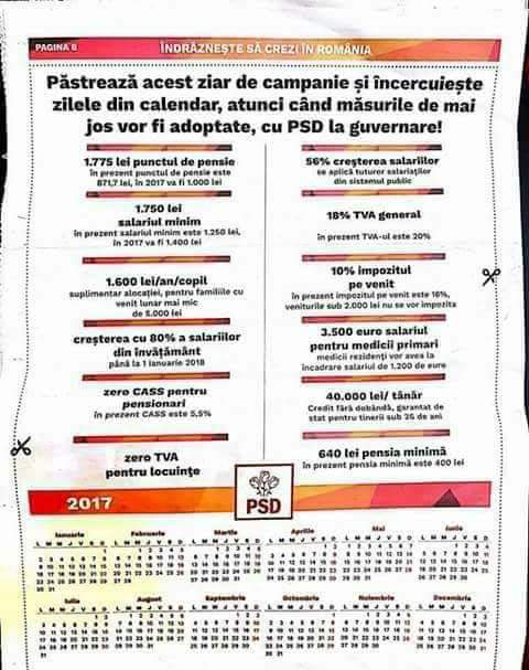 Ca să nu se piardă, am salvat promisiunile electorale ale PSD din iarna 2016, atât pe paginile acestui blog (aici) cât și ca imagine. Desigur anul 2017 încă nu s-a încheiat, dar risc să afirm că cele mai multe dintre promisiunile date ca sigure de către PSD pentru 2017 nu vor fi respectate anul acesta. Iată-le, mai jos: