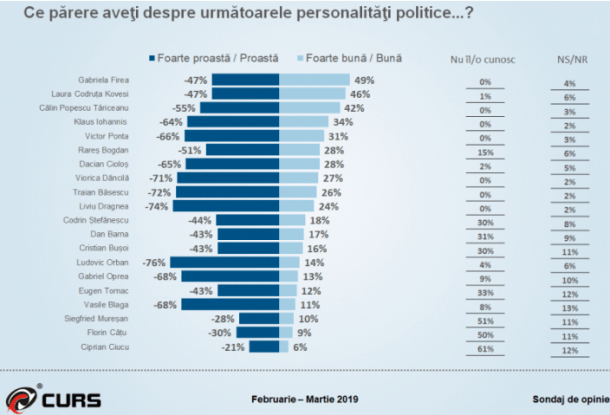 Cel mai bine plasat este Bogdan Rareș (care la ora sondajului încă nu era valorizat de către bucureșteni ca fiind penelist), cu 28% părere bună și foarte bună, acesta fiind vecin de palier cu Dacian Cioloș, dar devansat binișor de competitori precum Ponta (31%), Tăriceanu (42%) și mai ales Firea (48%).