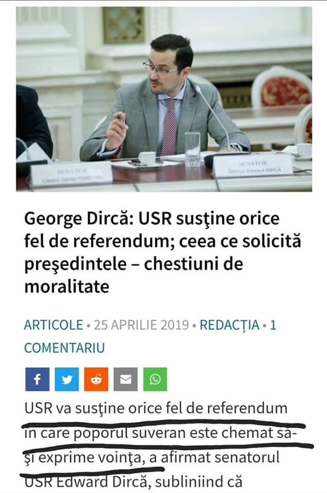 Păi bine, măi ipocriților, în orice referendum este un da și un nu, nu faci referendum așteptând unanimitate. Dacă primul referendum era diviziv, atunci și al doilea este. Dar voi ați respins primul și îl doriție pe al doilea. Și în orice referendum, poporul suveran își exprimă voința: și în 2019, și în 2018. Dar voi ați respins primul referendum, îl doriți în schimb pe al doilea.