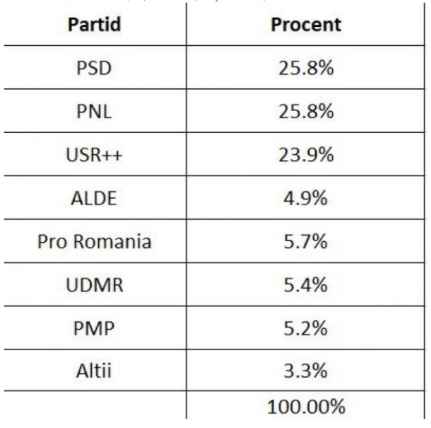 1. Am nimerit doar rezultatul PNL și PSD (ținând seama de marja de eroare de cca 3%).
