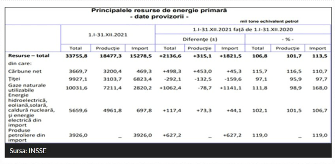 Hai să vedem unde ne-a dus gloriosul regim Iohannis după șapte ani: o producție internă totală de doar 18,47 milioane de tone echivalent petrol, din care cărbune 3,2 milioane de tone echivalent petrol, țiței- 3,1 milioane de tone, gaze naturale- 7,2 milioane de tone echivalent petrol și energie electrică- 4,9 milioane de tone echivalent petrol: