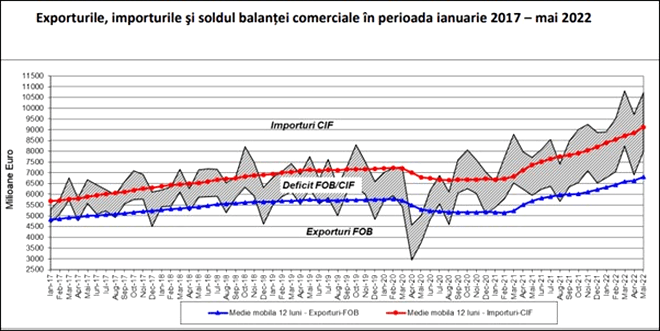 Hai să vedem, de exemplu, cât de competitive au ajuns produsele fabricate în România, cu prețurile la energie lectrică și gaze pe care guvernele Iohannis le-au impus sărmanelor firme autohtone. Produsele românești, din ce în ce mai scumpe, nu își mai găsesc locul nici pe rafturile din țară, necum să mai fie și exportate. Motiv pentru care deficitul comerțului internațional cu bunuri a crescut într-un ritm amețitor, ajungând la peste 15 miliarde de euro doar în primele șase luni ale lui 2022 și urcând glorios spre pragul de 30 de miliarde de euro pe tot anul în curs: