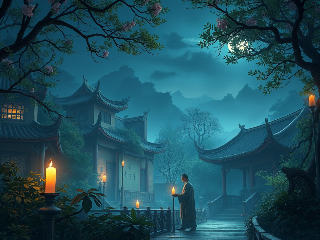 Ultimul cuvânt japonez din acest haiku, oshimu, tradus aici prin „alean”, are sensul suplimentar de „îndurerat” sau „reticent”. Prin urmare, acel om care se plimbă, cu sfeșnic în mână, prin grădina lui, este îndurerat pentru primăvara ce se trece și chiar îi duce, deja, dorul.
