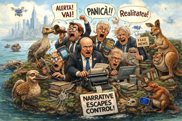 Este, în același timp, amuzantă și tristă degringolada și agitația păturii de formatori de opinie, intelectuali publici, analiști, jurnaliști, ONG-iști și alți agenți — mai mult sau mai puțin sub acoperire — ai liniei dominante de propagandă și ai diverselor „state paralele” care operează în România.