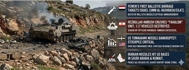 Războiul de 29 de zile a încetat să mai fie un simplu conflict regional; s-a transformat într-o gaură neagră logistică și strategică pentru axa occidentalo-israeliană. Intrarea Yemenului nu este doar o bifă pe hartă, ci o schimbare de paradigmă: Israelul nu mai luptă pe două fronturi, ci într-un cerc de foc. Nordul mușcă prin Hezbollah, estul pulsează prin Iran, iar sudul începe să lovească metodic.