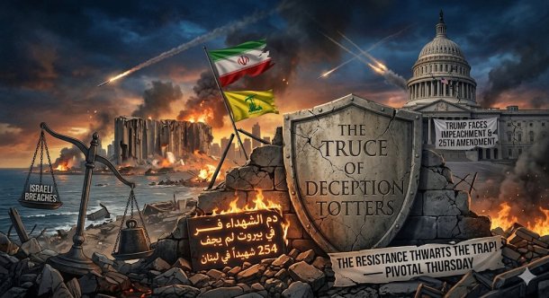 Ne trezim astăzi cu a doua zi de „armistițiu”, doar pentru a ne găsi în fața unei scene absurde: Washingtonul vorbește despre odihna unui războinic și o victorie iminentă, în timp ce sângele a 254 de martiri din Liban (rezultat din atacurile aeriene israeliene din ziua precedentă) nu s-a uscat încă. Israelul, cu o complicitate americană flagrantă, a încercat să transforme armistițiul regional într-o ghilotină pentru a elimina Rezistența libaneză. Cu toate acestea, răspunsul a venit de la Teheran prin renunțarea la „biletul Islamabad”, de la Dahiyeh [Suburbiile sudice] cu rachetele Al-Manara și Al-Taybeh și de la Washingtonul însuși cu manevre democratice fără precedent pentru a înlătura un președinte descris ca un „nebun”.