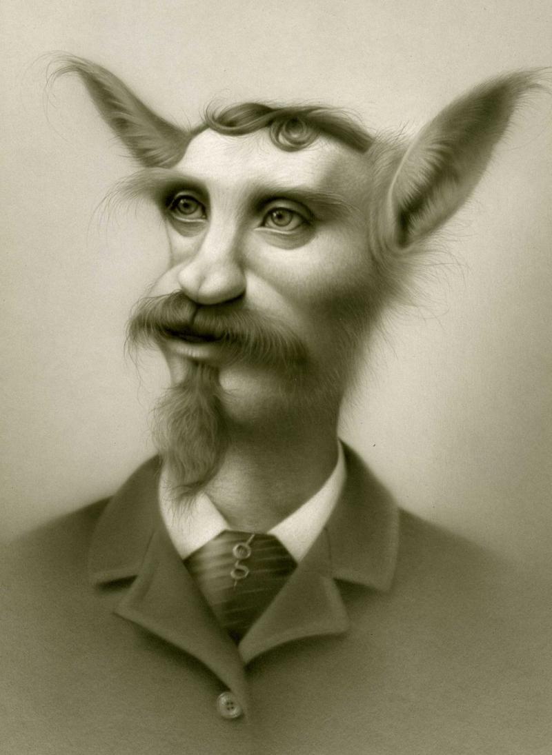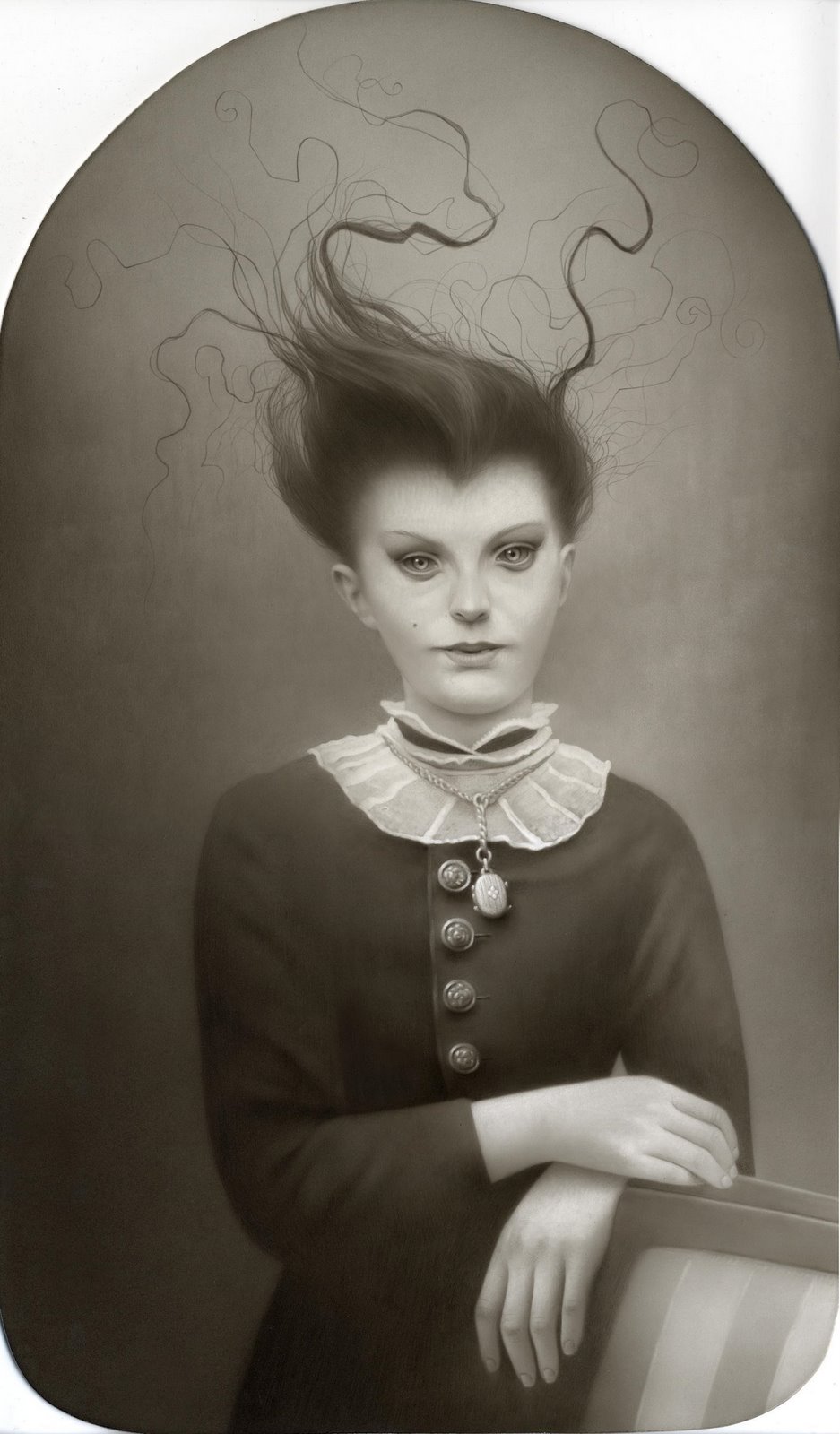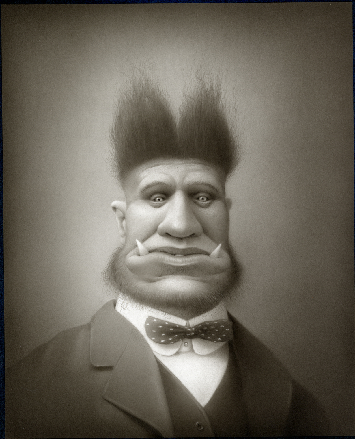 The influences for his work are many; the genre films, his fascination with human oddities, circus sideshows, old Vaudeville magic acts, Victorian portraits, and things otherworldly, are all blended together to enable him to bring life to the characters and stories he writes in his journals.
