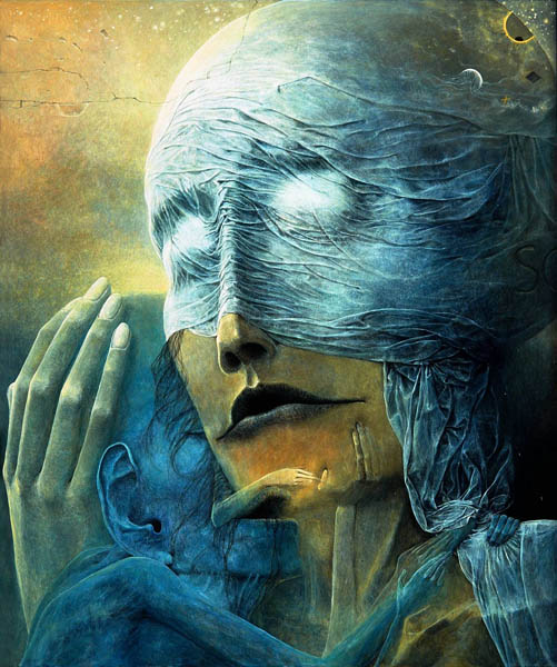 Zdzisław Beksiński (24 February 1929 – 21 February 2005) was a renowned Polish painter, photographer, and sculptor who is best known as a fantasy artist. Beksiński executed his paintings and drawings either in what he called a ‘Baroque’ or a ‘Gothic’ manner. The first style is dominated by representation, with the best-known examples coming from his ‘fantastic realism’ period when he painted disturbing images of a surrealistic, nightmarish environment. The second style is more abstract, being dominated by form, and is typified by Beksiński’s later paintings. Beksiński was murdered in 2005.