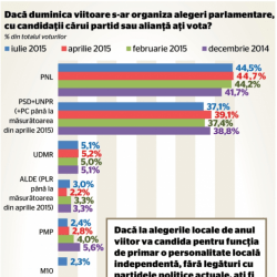 Dacă duminica viitoare s-ar organiza alegeri parlamentare, PNL ar obţine 44,5% (faţă de 44,7% în aprilie), în timp ce Alianţa PSD-UNPR ar înregistra 37,1% din sufragii (faţă de 39,1% la măsurătoarea din luna aprilie când testam intenţia de vot pentru Alianţa PSD – UNPR şi PC, partid aliat între timp cu PLR în cadrul ALDE). […]