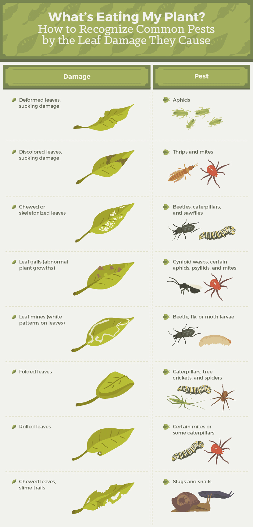 Ținem sub observație culturile, căutând eventualele pagube. Ne uităm la frunze, în special partea de jos, cea umbrită (acolo depun insectele ouă). De asmenei dacă frunzele sau fructele prezintă pete, deformări, decolorări sau colorări de orice fel – acestea sunt semne că ceva nu este în regulă. Mai jos adaug o planșă – este doar orientativă.