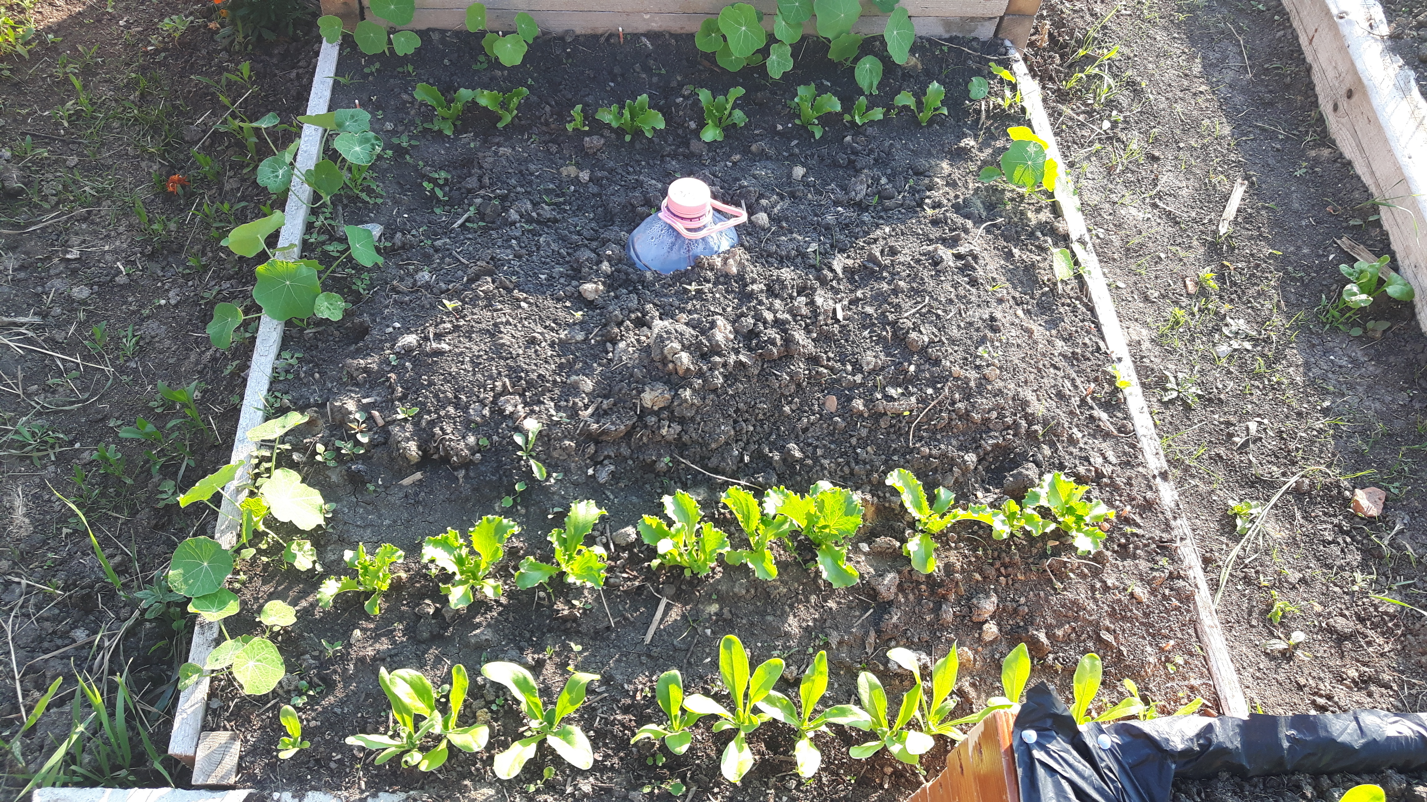 Salata a încolțit și am rărit-o, de asemeni crăițele și gălbenelele. Patul așteaptă, pentru a fi gata, răsadurile de zuchini.