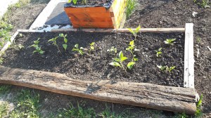 De asemeni un pat creat în luna mai. Deocamdată are plantate doar o roșie și gogoțari, precum ți niște gălbenele + nasturtium. Urmează să pun și niște salată, pe margini.