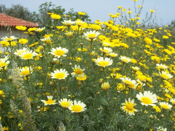 Crizantemele (Chrysanthemum coronarium) – Gust astringent, ușor amar, de la ușor pipărat la cel apropiat de al guliei. Florile se folosesc doar după îndepărtarea bazei amare. Frunzele pot fi folosite la aromarea oțetului. Varianta Crown Daisy (Shingiku în Japonia) este larg folosită în aromarea uleiului de prăjit și asezonarea salatelor.