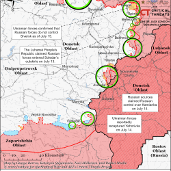 ISW Main Effort—Eastern Ukraine Subordinate Main Effort—Southern Kharkiv, Donetsk, Luhansk Oblasts (Russian objective: Encircle Ukrainian forces in Eastern Ukraine and capture the entirety of Donetsk and Luhansk oblasts, the claimed territory of Russia’s proxies in Donbas) Russian forces resumed localized ground attacks northwest of Slovyansk along the Kharkiv-Donetsk Oblast border on July 20. The Ukrainian General […]