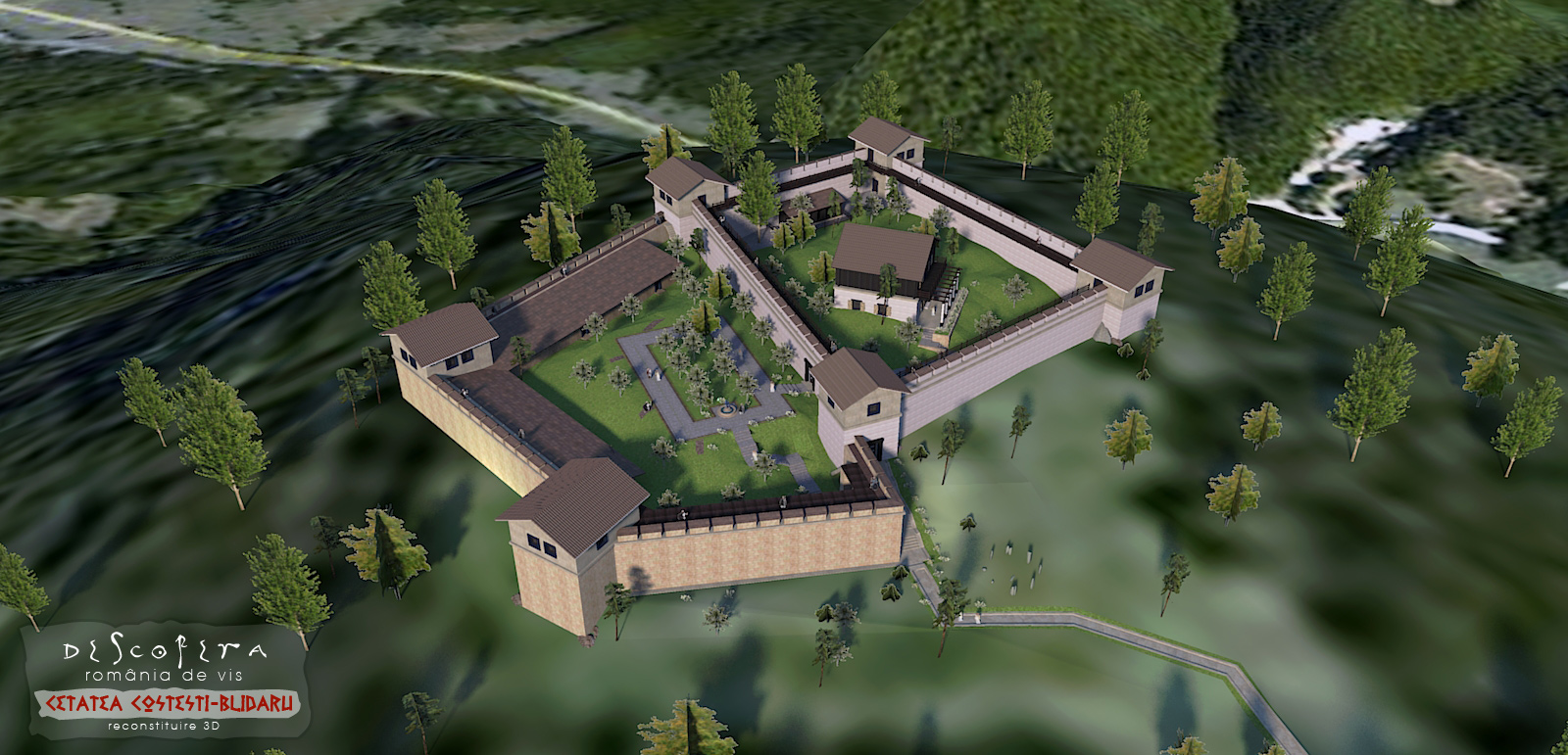 Cetăți și așezări dacice. Dacidava – reconstituire 3D ipotetica v1; un tur și informații, la http://aboutdacians.blogspot.com/2018/01/cetatea-dacica-de-la-simleu-silvaniei.htmlCetatea Zînelor, Covasna. Mai multe, aici: http://www.romaniadevis.ro/dacia/zona-geto-daca/reconstituiri-3d/item/cetatea-zinelor-reconstituire-3d-v-2Dăgănești, Olt (mai multe, aici: http://www.xplorio.ro/cetatea-dacica-draganesti-olt-video/)Cetatuia ArdeuCetatea Costești