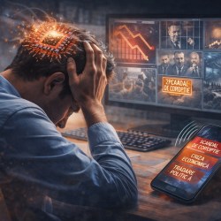 Stai în fața ecranului. Telefonul vibrează: scandal de corupție. Mai vibrează: criză economică. Din nou: trădare politică. Mintea ta, ca un procesor supraîncărcat, începe să cedeze. Nu mai poți procesa. Nu mai vrei să încerci.